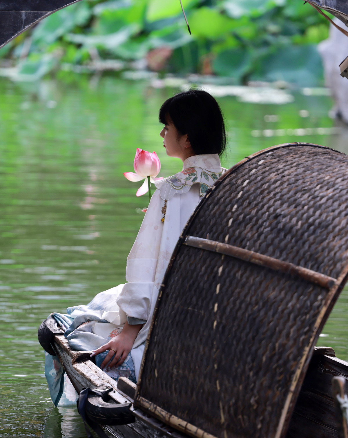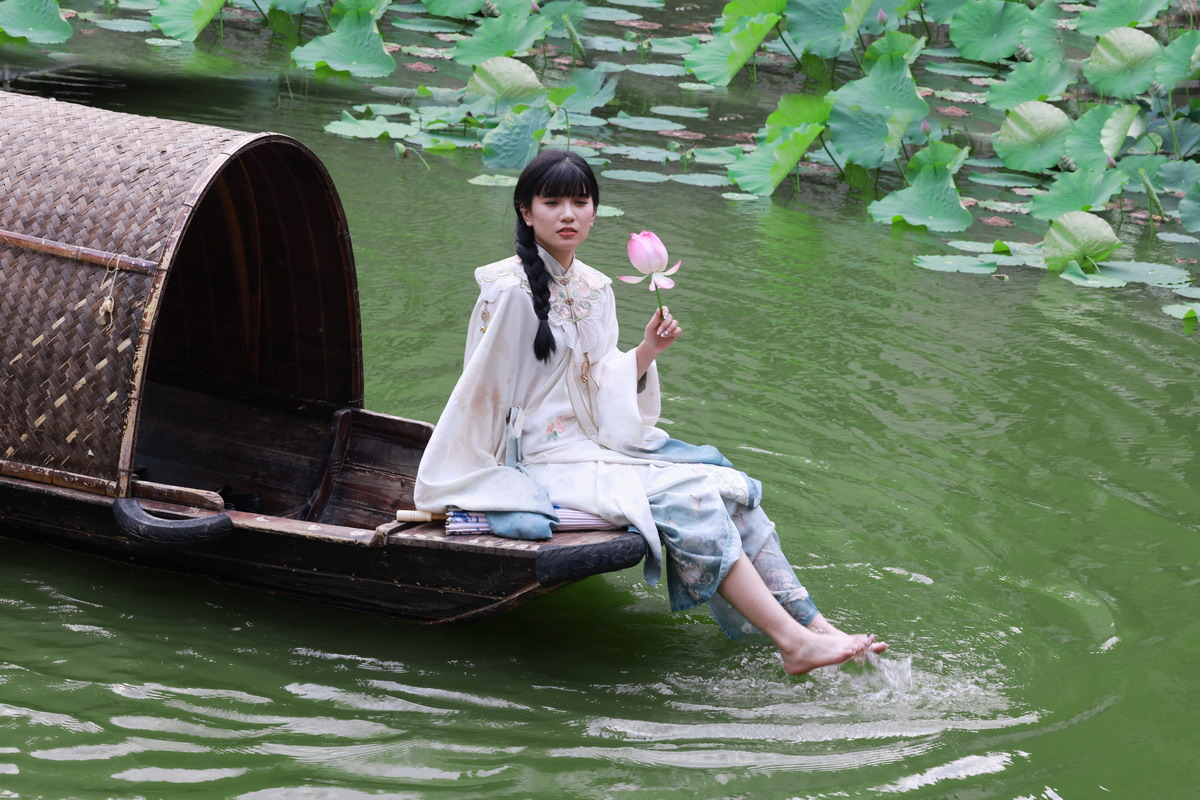 乌篷轻荡,素手荷花香