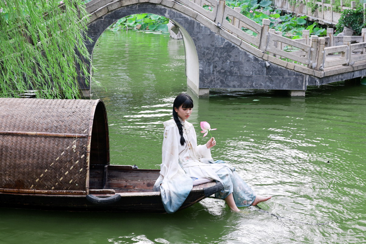 乌篷船轻荡,舷边素手垂落,撩起碎玉般的水花